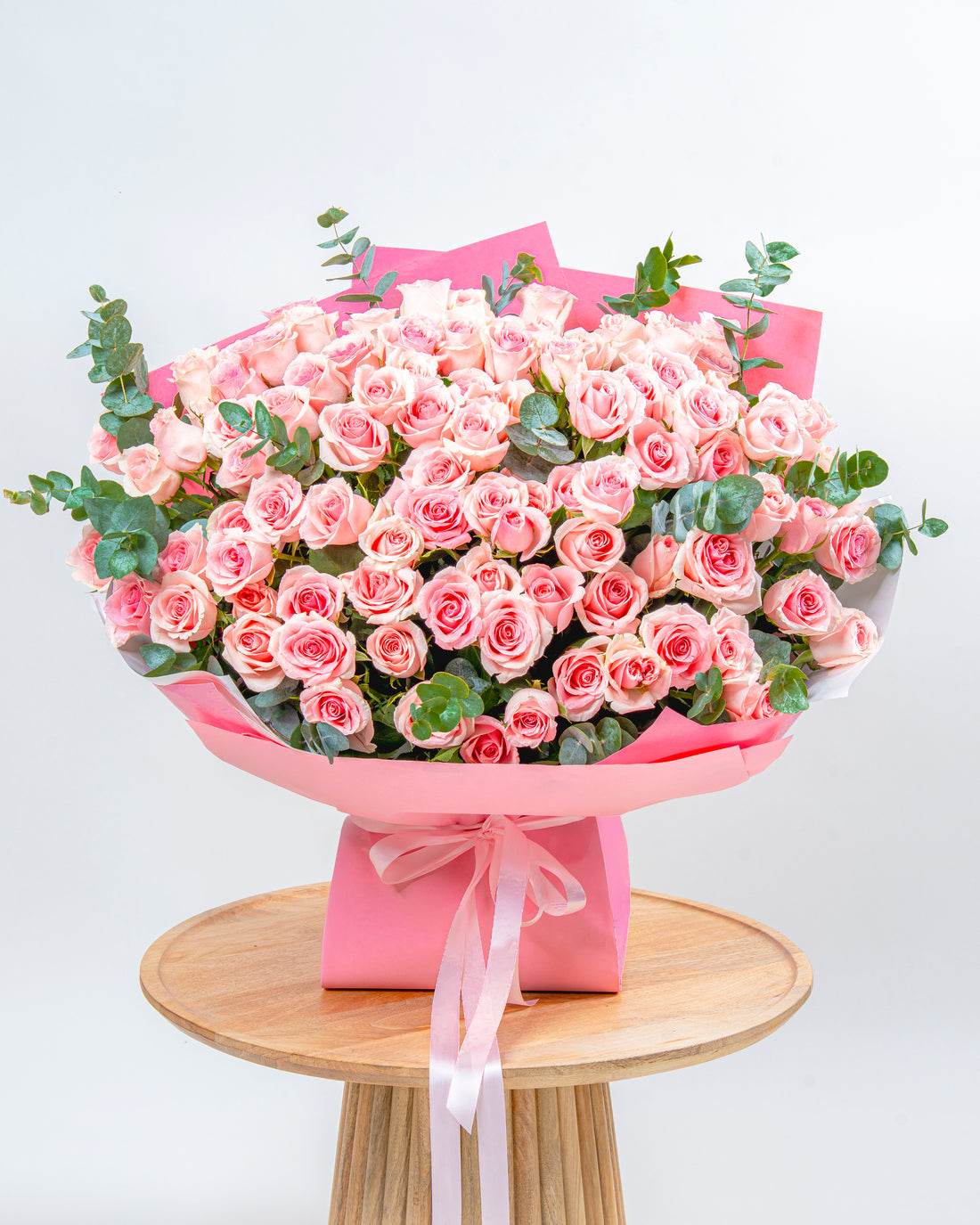 Delight in the tender charm of our Luxury Pink Roses Bouquet, thoughtfully arranged to capture...