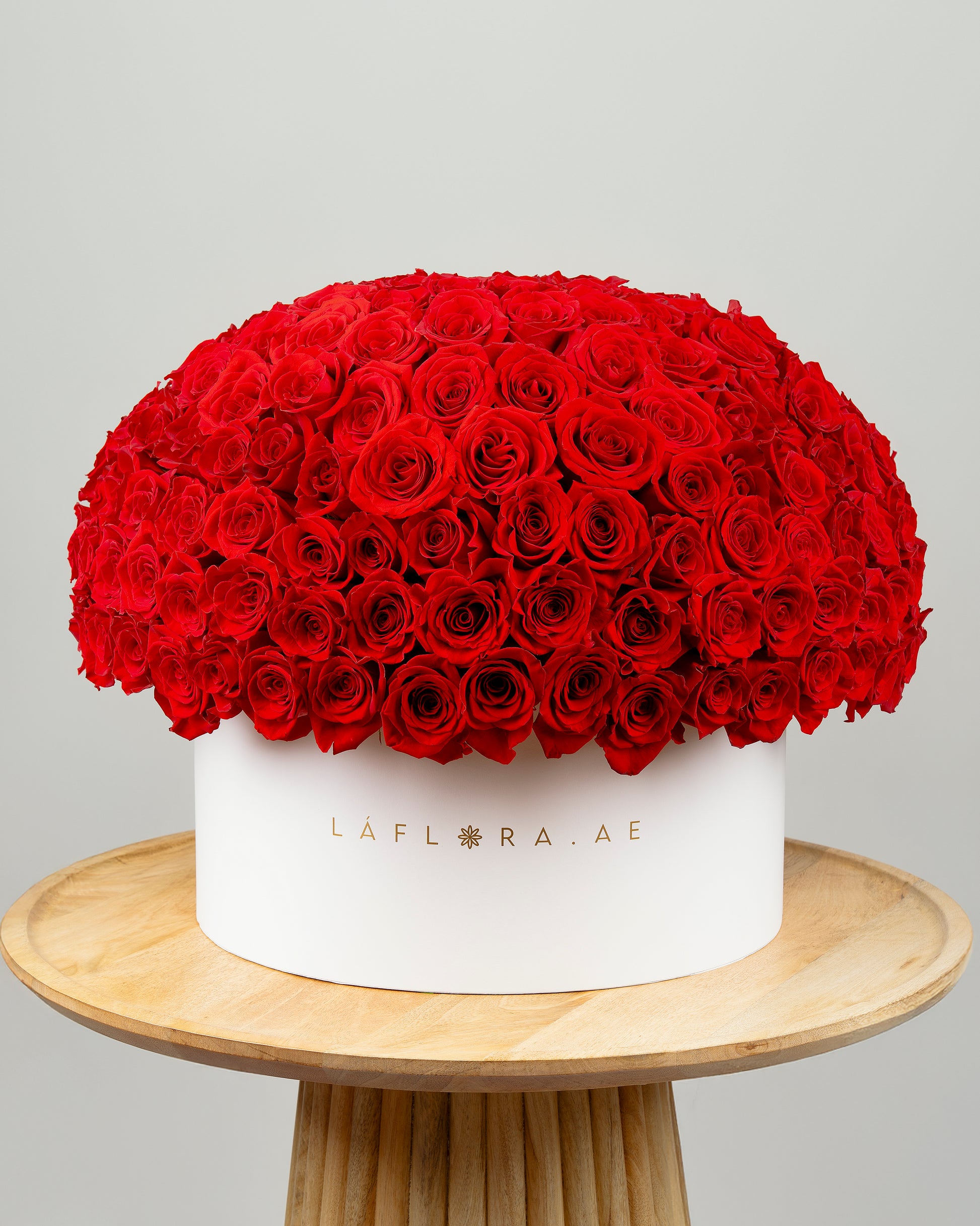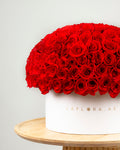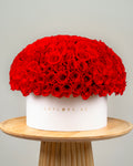 A stunning hatbox arrangement featuring 200 luxurious red roses, designed to leave a lasting impression. Perfect for anniversaries, proposals, birthdays, or any special occasion, this arrangement is the ultimate declaration of love. Handcrafted by expert florists, it is a timeless symbol of romance and elegance.
