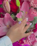 باقة "بلومينغ فلاورز بوكس" تحفة فنية زهرية آسرة، مصممة لتُأسر القلوب. تمزج هذه التركيبة الفاخرة بين الجمال الرقيق للزنابق الوردية المائلة للوردي، والجاذبية الكلاسيكية للورود الحمراء، وسحر زهور الفالينوبسيس الوردية الأخّاذ. تُكمّل هذه الباقة زهور القرنفل الوردية الناعمة، والليزيانثوس الوردي، وزهرة أنف العجل العاجية، وخضرة الأوكالبتوس الرقيقة، لتكون مثالية للهدايا، أو الاحتفالات، أو كقطعة مركزية في المناسبات الخاصة. تُعرض في علبة زهور وردية مميزة، فتُضفي عليها لمسة من الرقي والدفء.
