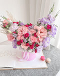 عبر عن أعمق مشاعرك مع صندوق زهور باستيل بلوم، وهو عبارة عن تنسيق زهور أنيق على شكل قلب مصنوع من الورود الوردية، والليزيانثوس الأرجواني الناعم، والقرنفل الرقيق، والحشو الموسمي. هذا التصميم الجميل هو الخيار الأمثل للاحتفالات بالذكرى السنوية، وأعياد الميلاد، أو ببساطة لإضفاء البهجة على يوم شخص ما. يرمز هذا التنسيق الموجود في صندوق وردي باستيل أنيق إلى الحب والتفكير، مما يجعله هدية لا تُنسى لأي مناسبة.