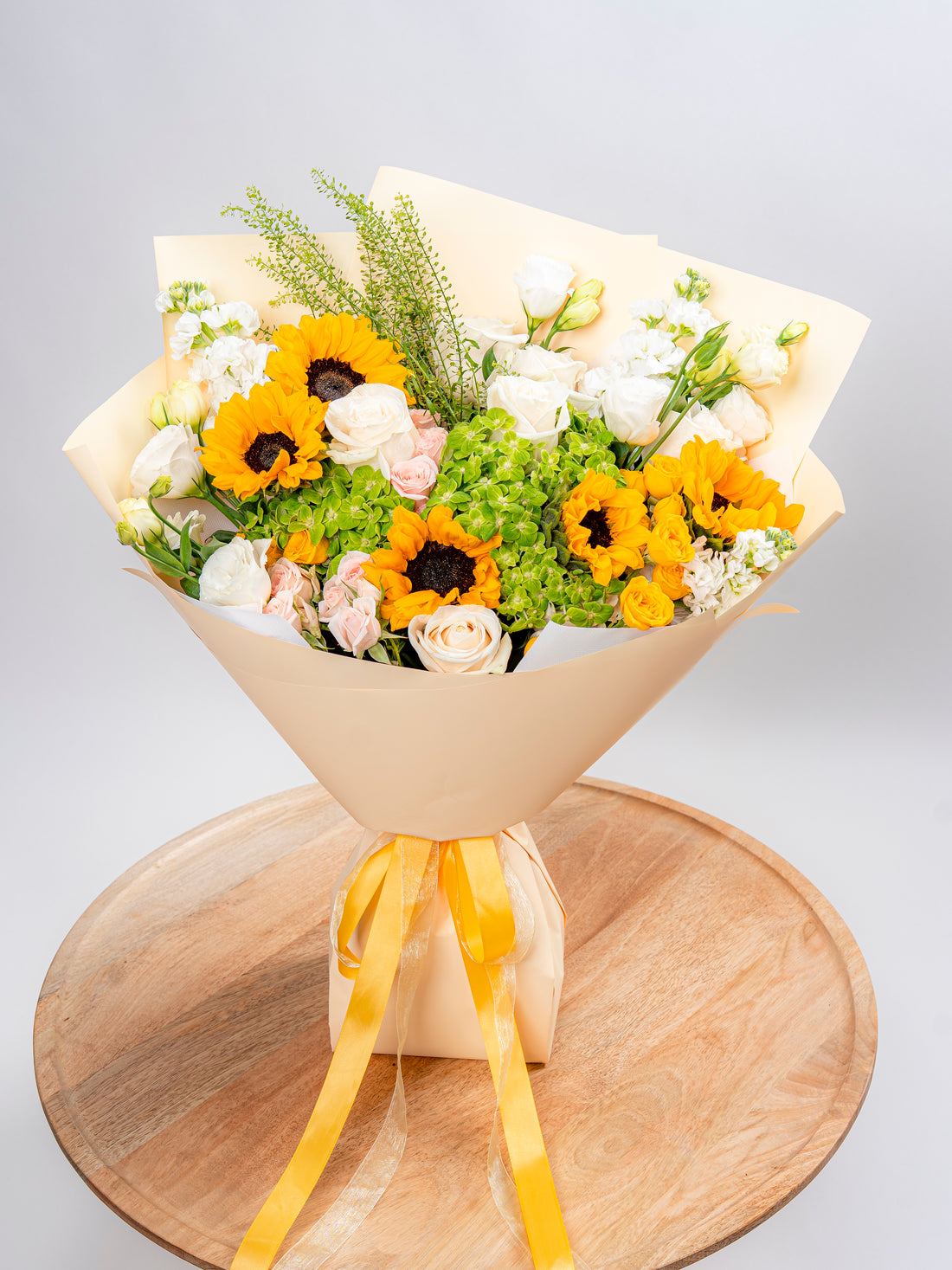 The Sunlit Harmony Bouquet is a radiant celebration of natural beauty and refined elegance. Featuring...