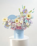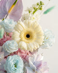 The blend of crisp whites, gentle pinks, and cool blue tones gives this arrangement a soothing, uplifting feel ideal for birthdays, baby showers, anniversaries, congratulations, get-well gestures, or thoughtful gifting. Each flower is selected for freshness and harmony, styled to create depth, softness, and modern elegance.