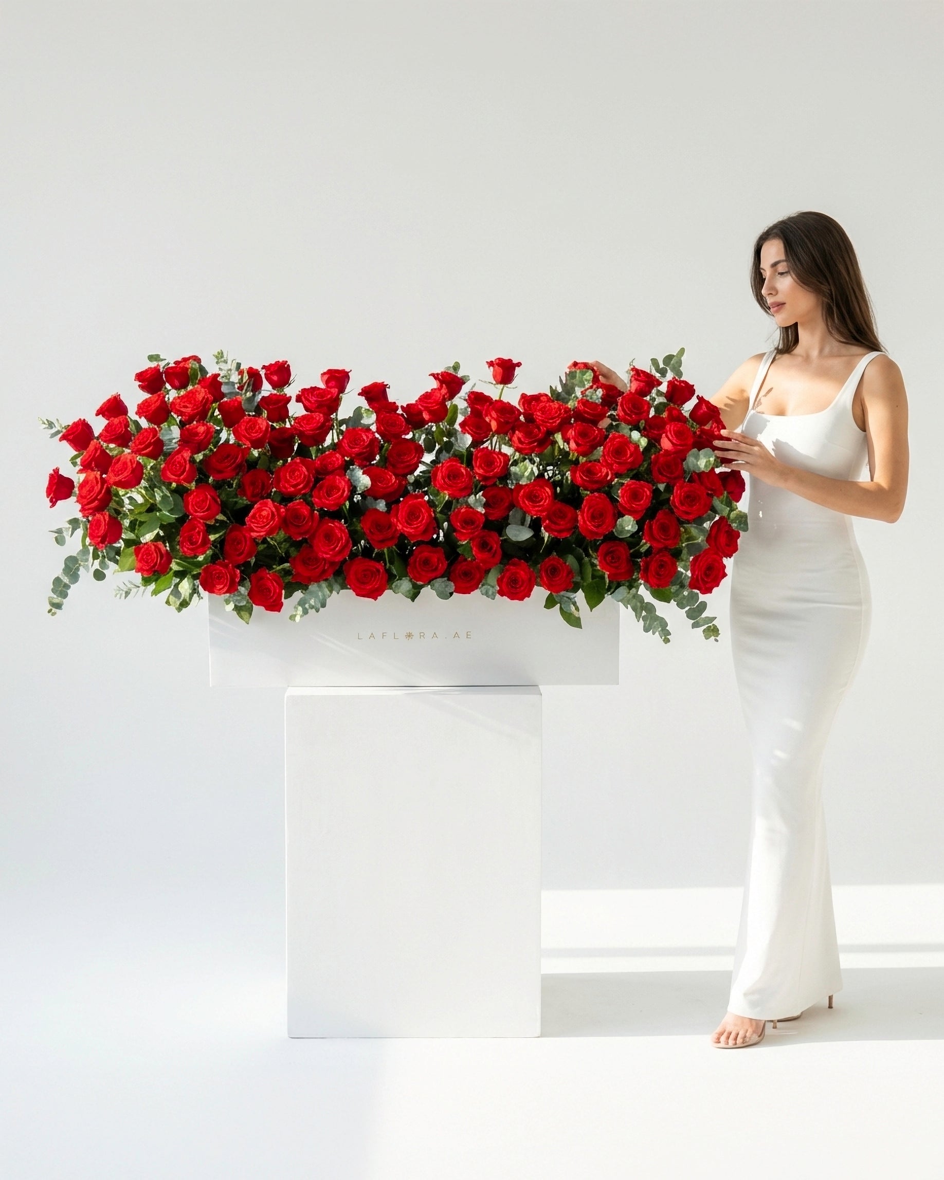 Red roses symbolize passionate love and unwavering commitment, making this design ideal for Valentine’s Day, anniversaries, proposals, or meaningful romantic milestones. Crafted with Laflora’s signature artistry, each size delivers exceptional volume and elegance, allowing you to choose the scale that best expresses your emotions.