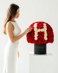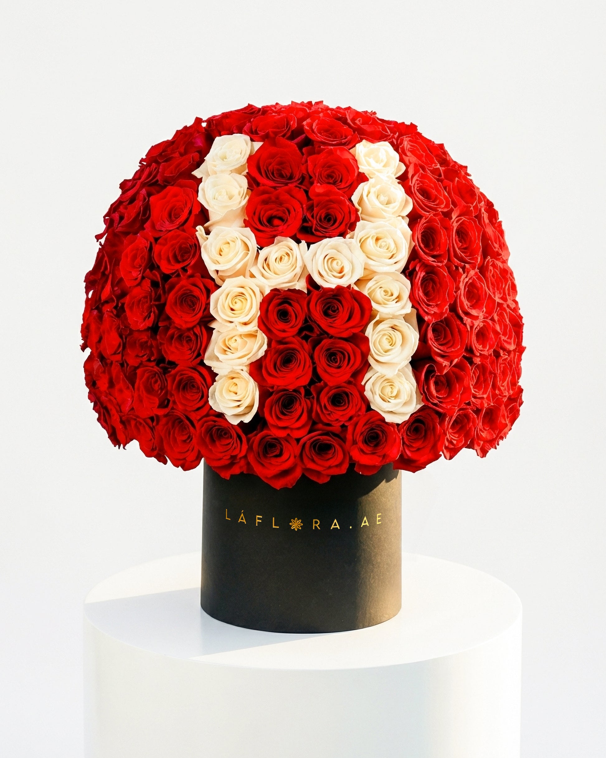 Red roses symbolise love, passion, and devotion, while white roses express sincerity, purity, and heartfelt intention. Perfect for proposals, anniversaries, birthdays, or romantic surprises, this design turns a single letter into an unforgettable expression of love. Presented in Laflora’s signature luxury box, it’s a statement gift made to be remembered.