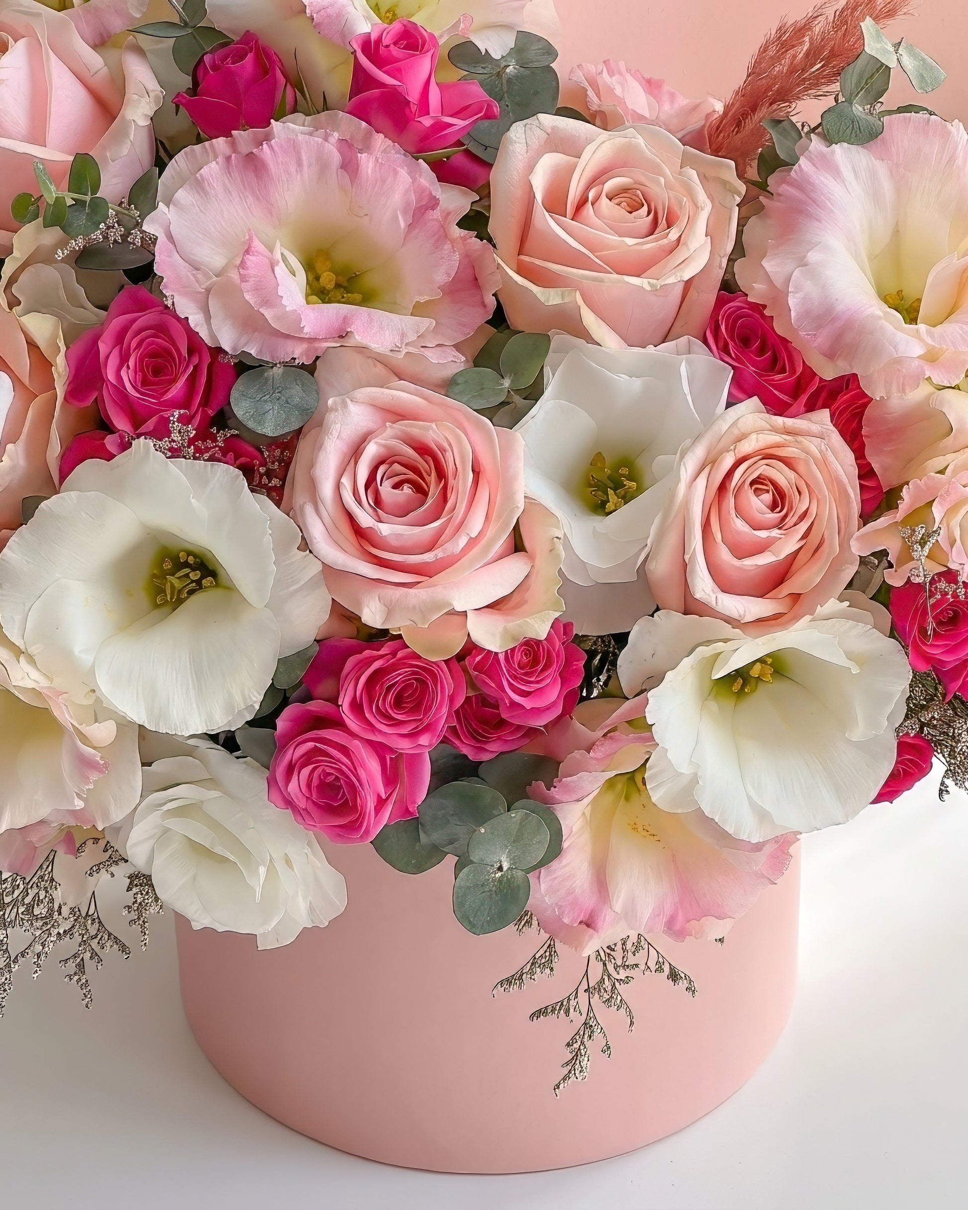 Beautifully presented in a soft pink luxury box, this arrangement is ideal for expressing love, appreciation, or celebrating life's cherished moments. Its sophisticated style makes it a memorable gift for birthdays, anniversaries, or simply to brighten someone's day.