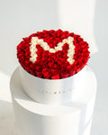 The flat-facing style offers a modern, refined look that highlights the character with clarity and balance. Red roses symbolise love, passion, and devotion, while white roses express sincerity and purity, making this arrangement ideal for romantic occasions, anniversaries, birthdays, and meaningful surprises.